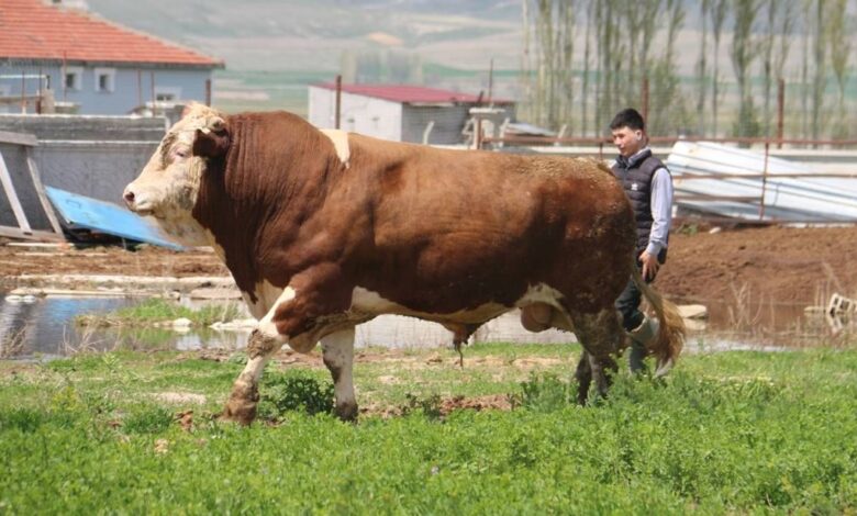 Ağırlığı ile dikkat çeken 34 aylık devasa boğa, günlük 15 ila 20 kilogram arası yem tüketiyor.