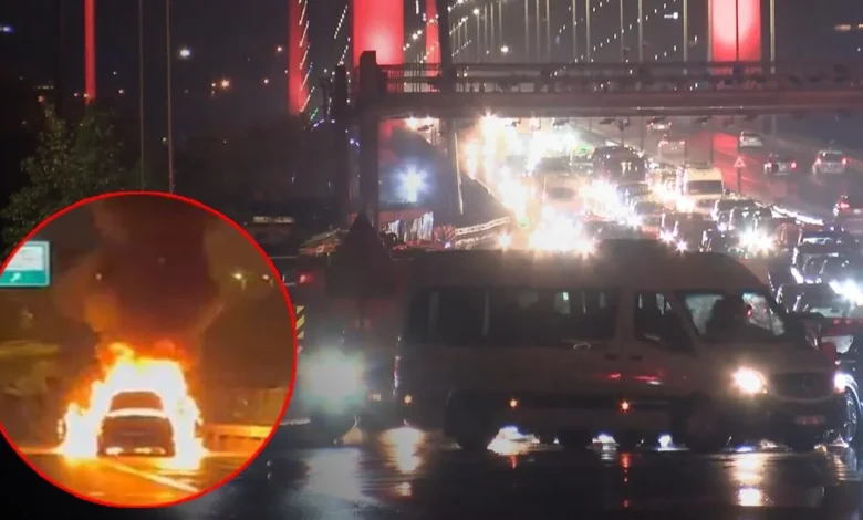 15 Temmuz Şehitler Köprüsü’nde korkutan yangın: Otomobil alev alev yandı!