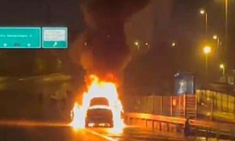 D-100 Karayolu, 15 Temmuz Şehitler Köprüsü Anadolu Yakası çıkışında seyir halindeki otomobilde yangın çıktı.