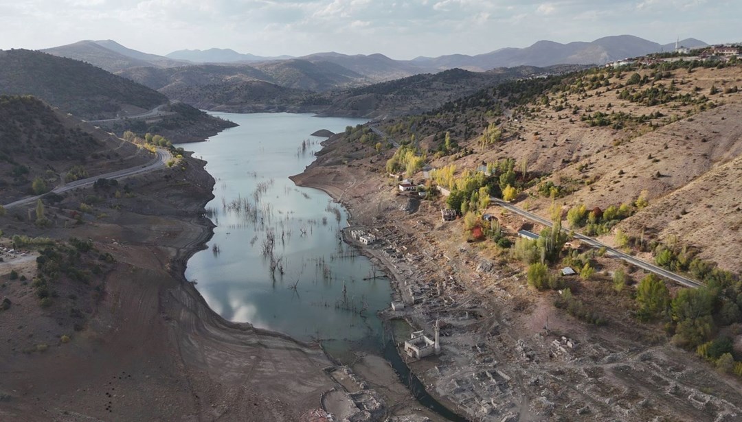15 yıldır sular altında kalan köy tamamen ortaya çıktı