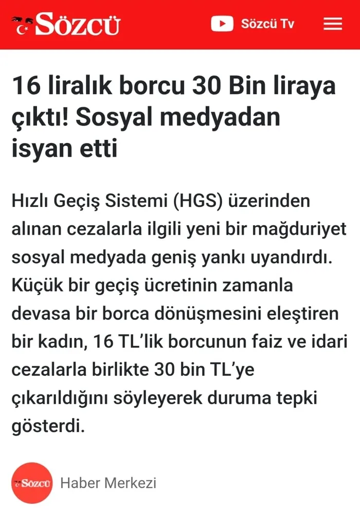 16 liralık HGS borcunun 30 bin liraya çıktığını iddia etmişti! Gerçek ortaya çıktı