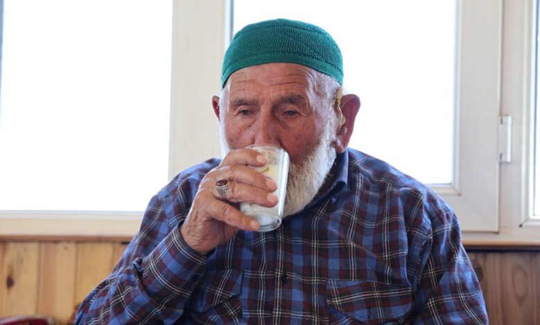 Önceki yıl abdest aldığı sırada düşerek kalça kemiği kırılan Mahmut Şimşek, ameliyat olduktan 2 gün sonra tekrar yürümeye başladı. Süt, yoğurt, ayran, peynir ve tereyağını çok tükettiğini söyleyen Şimşek, “Allah ömür veriyor bizde yaşıyoruz” dedi.
