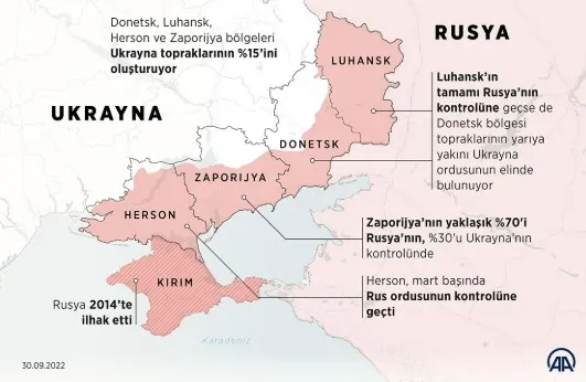 Telegraph’ın haberine göre ABD’nin, Ukrayna’nın Rusya tarafından işgal edilen Kırım, Donetsk ve Luhansk’ı Putin’e devredeceği iddia edildi. (AA)