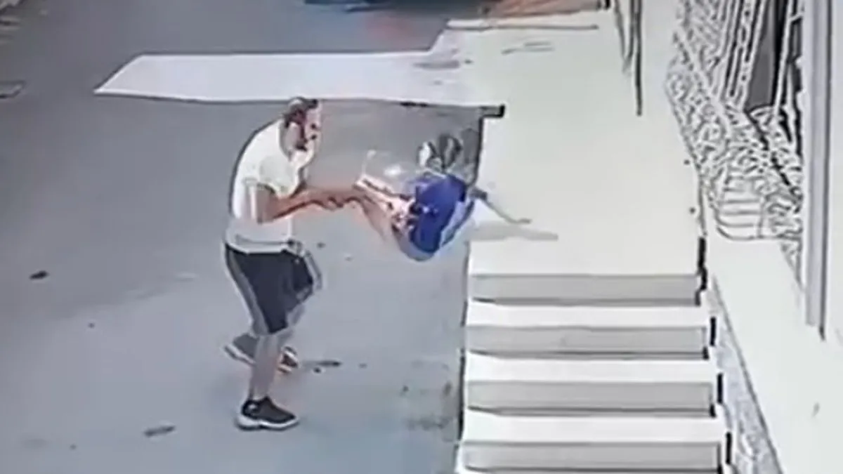 Adana’da kimliği belirsiz bir kişinin sokakta kovaladığı çocuğu evin merdivenlerinde yakalayıp, ayak bileğinden tutarak yere fırlattı. Kan donduran görüntüler güvenlik kamerasına yansırken, polis şüpheliyi yakalamak için çalışma başlattı.