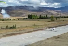 Göksu Nehrini çevreleyen kavak ağaçları, sarı ve yeşil renk tonlarıyla Alman Köprüsü’nde manzara oluşturuyor. Demiryolu ulaşımında kullanılan köprüdeki sonbahar güzelliği drone ile görüntülendi.