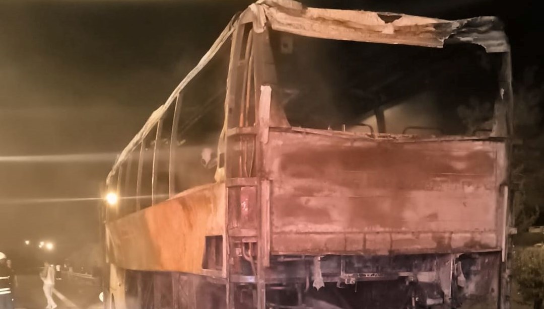 İtfaiyenin müdahalesiyle söndürülen yangın sonucu otobüs kullanılamaz hale geldi.