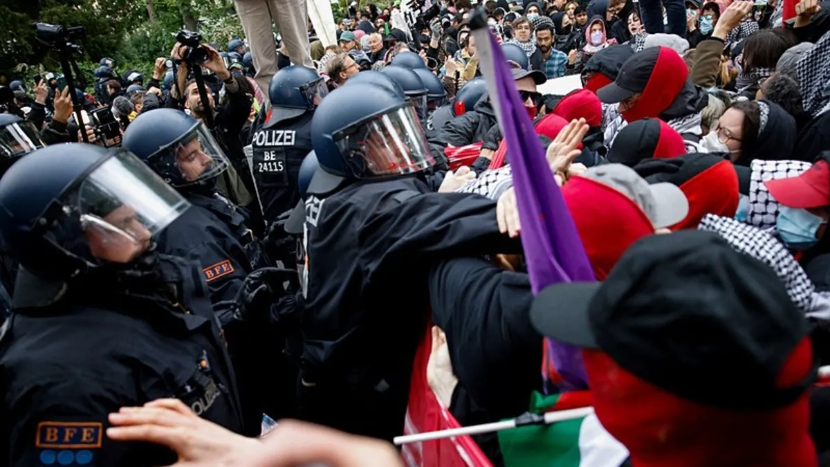 Almanya’nın başkenti Berlin’de, İsrail’in bağımsızlığını ilan ettiği tarih olan 14 Mayıs 1948 tarihini takip eden gün olan 15 Mayıs’ı ve ardından yaşananları Nekbe Günü, yani “felaket günü” olarak anan Filistinlilere destek için düzenlene protestoda gözaltına alınanlar oldu.