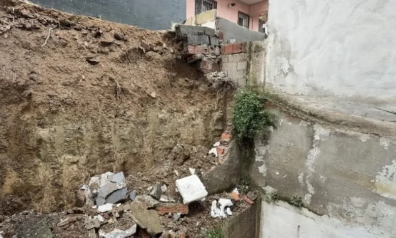 Arnavutköy’de korkutan manzara! İki bina arasındaki istinat duvar çöktü! 2 bina tahliye edildi