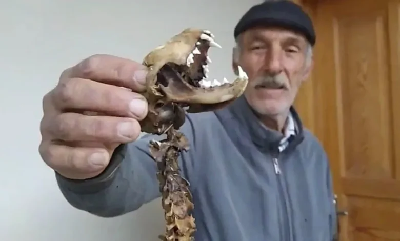 Artvin’in Yusufeli ilçesinde Yavuz Turan tarafından yırtıcı dişlere sahip 55 santimetre boyunda hayvan iskeleti bulundu. İskelet, Doğa Koruma ve Milli Parklar (DKMP) tarafından hayvanın türünün belirlenmesi için incelenmeye alındı.
