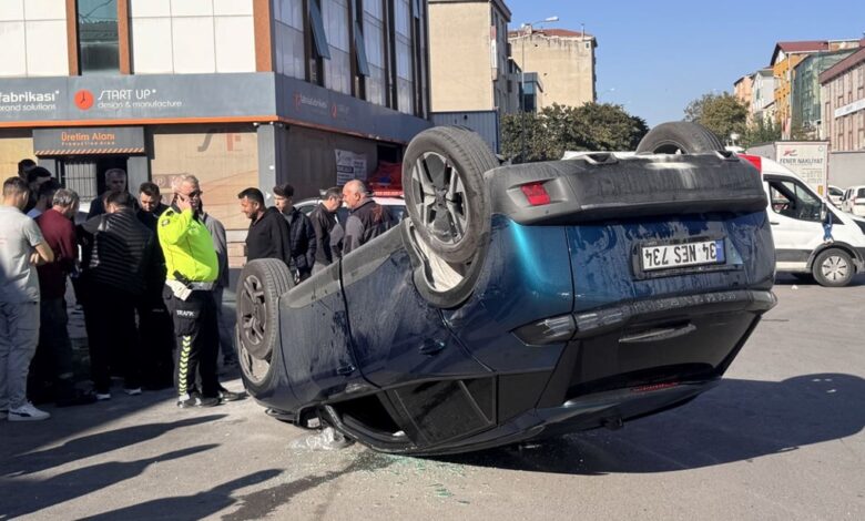 Ataşehir’de panelvanla çarpışan otomobil ters döndü