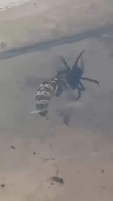 Görüntülerde ağın bulunduğu alana gelen arıyı fark eden örümcek ağdan kurtulamayan arıyı sarmaya başladığı görülüyor.