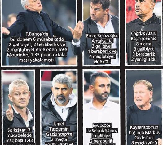 Süper Lig’de teknik direktör ayrılıkları hız kesmiyor. 4 gün içinde 3 hoca takımlarına veda ederken 8 haftada gidenlerin sayısı 7’ye yükseldi. Gaziantep FK’da İsmet Taşdemir, Beşiktaş’ta Ole Gunnar Solskjaer, Fenerbahçe’de Jose Mourinho, Başakşehir’de Çağdaş Atan ile yollar ayrılırken son olarak Selçuk Şahin (Eyüpspor), Markus Gisdol (Kayserispor) ve Emre Belözoğlu’nun (Antalyaspor) biletleri kesildi. Geçen dönem ligde Ekim ayının ilk çeyreğinde 4 teknik adam ayılırken bu sene takımlarımız ayrılık şarkılarını çok daha fazla söyledi.