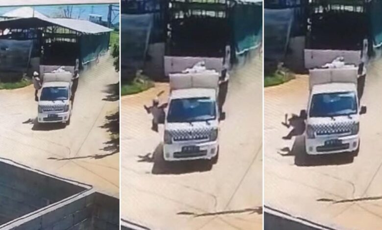 Olay anı ise çevrede bulunan güvenlik kamerasına yansıdı. Görüntülerde, aracın dönüş yaptığı sırada Hasan Dok’un dengesini kaybederek düştüğü anlar yer aldı.