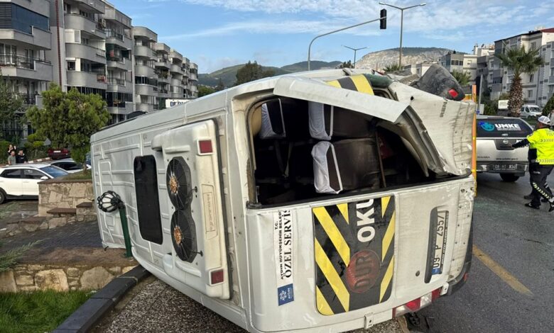 A.Ş. yönetimindeki 09 P 2557 plakalı, öğrencileri taşıyan minibüs, Yenikent Mahallesi kavşağında, E.Y,’nin kullandığı 09 AHP 591 plakalı minibüsle çarpışarak devrildi.