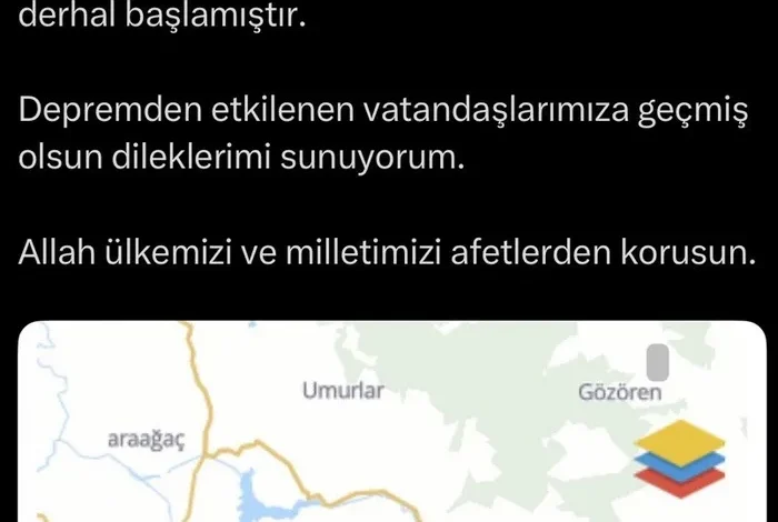“Sındırgı ilçemizde 4,9 büyüklüğünde bir deprem meydana gelmiştir. An itibarıyla olumsuz bir durum yoktur. Depremden etkilenen vatandaşlarımıza ‘geçmiş olsun’ dileklerimi sunuyorum. Allah ülkemizi ve milletimizi afetlerden korusun.”