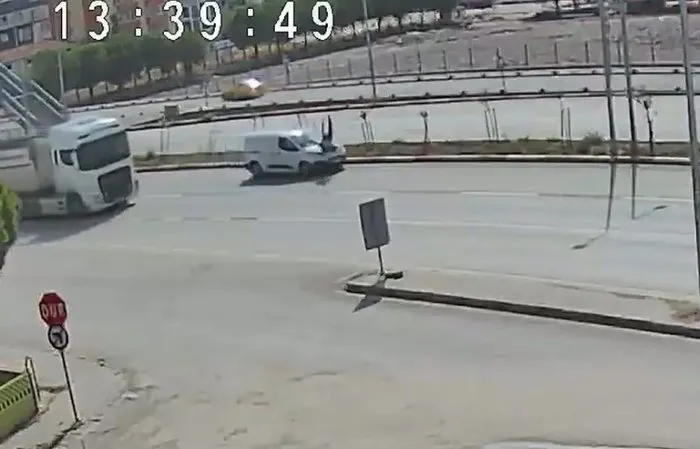 Kaza anı ise bir iş yerinin güvenlik kamerasına yansıdı. Görüntülerde, kamyonetin seyir halindeyken yayaya çarpması ve yayanın metrelerce savrulması anbean kaydedildi.
