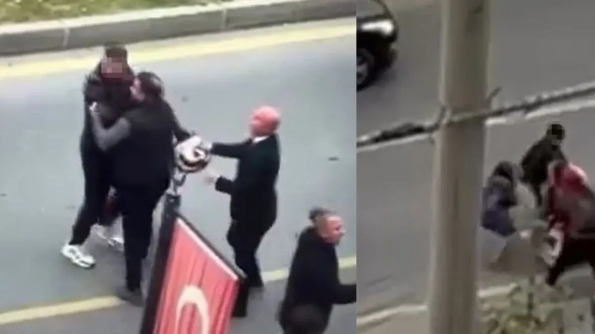 Kavga sırasında, hafif ticari araç sürücüsü, motosikletli babaya yanında bulunan küçük çocuğun gözleri önünde saldırdı. Taraflar birbirlerine tekme, yumruk ve kaskla vururken, çevredeki vatandaşlar kavgayı ayırmakta güçlük çekti.