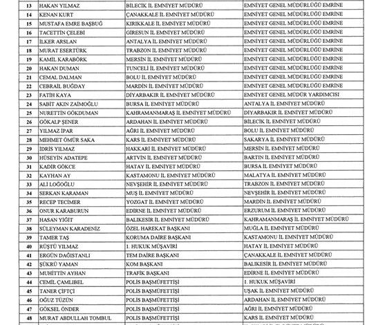 Diyarbakır Emniyet Müdürü Fatih Kaya, Emniyet Genel Müdür Yardımcılığı’na atandı. Bursa Emniyet Müdürü Sabit Akın Zaimoğlu, Antalya Emniyet Müdürlüğü’ne getirildi.