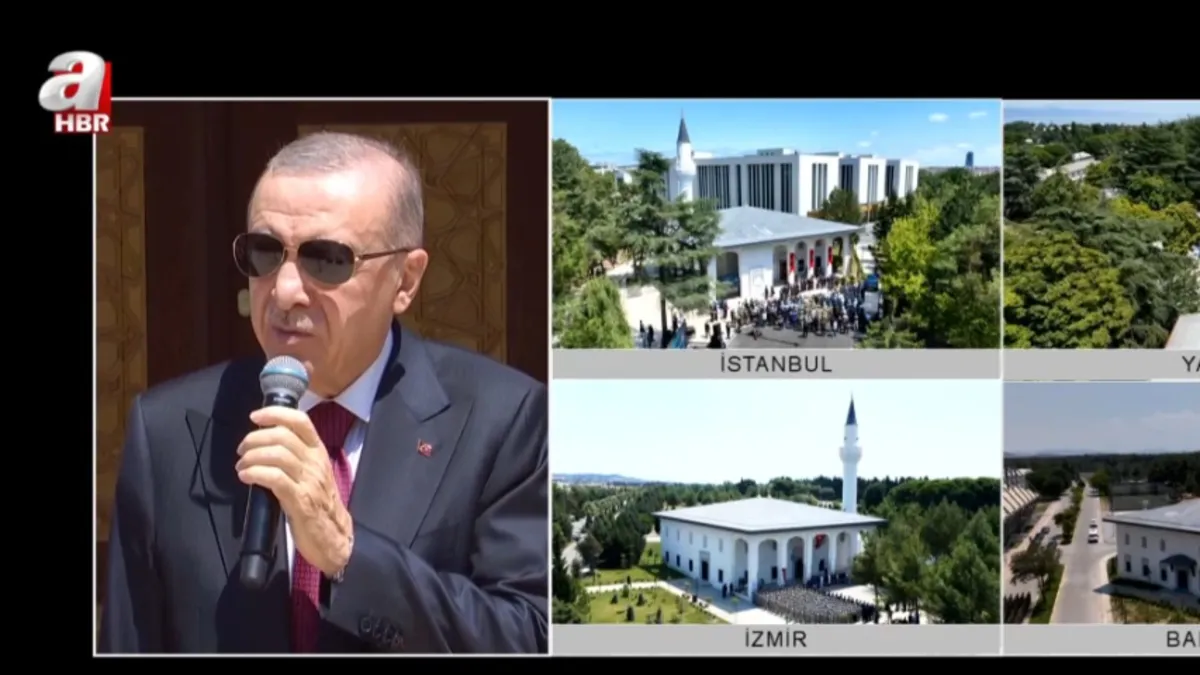 Başkan Erdoğan yapımı tamamlanan camilerin açılışında konuşuyor