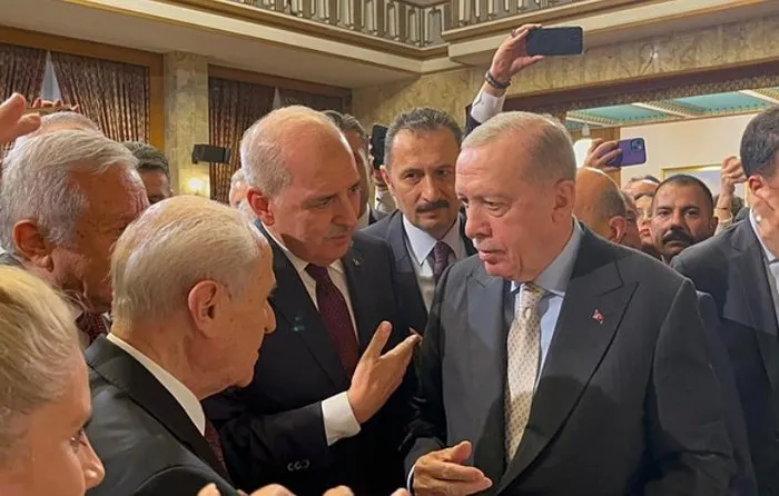 Burada Erdoğan, TBMM Başkanı Numan Kurtulmuş, MHP Lideri Devlet Bahçeli, BBP Genel Başkanı Mustafa Destici ve HÜDA-PAR Genel Başkanı Zekeriya Yapıcıoğlu ile bir araya geldi.