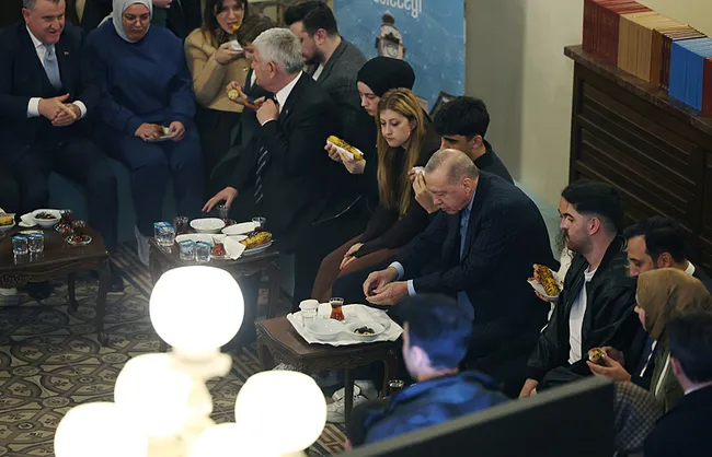 Programda söz alan bir genç, Başkan Erdoğan’a, okuduğu şiir nedeniyle yaşadığı hapis sürecinin siyasi yolculuğunda neyin başlangıcı olduğunu sorarak, şiiri yeniden okumasını istedi. 4 ay hapiste kalmasına gerekçe yapılan Ziya Gökalp’e ait “Minareler süngü, kubbeler miğfer” dizelerini içeren ‘İlahi Ordu’ şiirini yeniden okuyan Erdoğan, şöyle konuştu: Bu, aynı zamanda Ziya Gökalp’le eş anlamlı olarak da söylenen bir şiirdi. Ama buna rağmen, ne olursa olsun, kimin okuduğu önemliydi. Oradan yaklaşılarak hemen dava açıldı. Hayırlısıyla biz de cezaevine gittik. Ama bakın, oradan çıktık. Fazla sürmedi. 15 ay sonra siyasette kapılar bize farklı bir şekilde açıldı. Yeni bir dünya kuruldu ve Türkiye’de, yeni bir dönemin kapıları açıldı. Programda söz alan bir başka öğrenci, Başkan Recep Tayyip Erdoğan’a teşekkür ederek, daha önce okuduğu şiirin CHP Genel Başkanı Özgür Özel tarafından taklit edilmeye çalışıldığını ifade etti ve buna ilişkin hazırlanan bir videoyu izletti. Görüntüler üzerine gülümseyen Erdoğan, “Karıştırdı ya, ‘Minareler mızrak oldu’ diyerek…” ifadelerini kullandı.