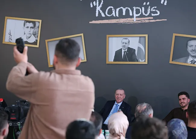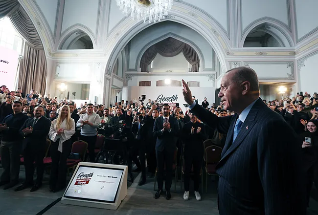 Sevgili genç kardeşlerim; bugün çatısı altında bir araya geldiğimiz bu tarihî bina, hem şahsımın siyasi hayatında hem de Türk siyasal tarihinde özel bir yere sahiptir. Mekteb-i Tıbbiyye-i Şahane olarak uzun yıllar hizmet veren, İstanbul’un simge yapılarından olan bu bina, aynı zamanda gazeteci merhum Mehmet Ali Birand’ın hazırlayıp sunduğu 32. Gün programının çekildiği mekândır. Burada kendisiyle güzel bir sohbet gerçekleştirdik. O moderatördü ve sevgili gençler de orada bizi adeta soru yağmuruna tutmuştu. İstanbul Büyükşehir Belediye Başkanı olduğum dönemde, 1998 yılında bu salonda rahmetli Birand’ın misafiri olmuş, üniversite öğrencilerinin sorularını cevaplamıştım. 27 yıl sonra bu kez Türkiye Cumhurbaşkanı olarak yine aynı mekânda üniversite gençliğiyle bir araya gelmenin bahtiyarlığını yaşıyorum. Böylesine tarihî bir mekânda bu anlamlı buluşmaya vesile olan Gençlik Kollarımızı huzurlarınızda tebrik ediyorum. Sağ olsunlar, var olsunlar. Gençler, bakınız; biz genç dimağların enerjisini ve heyecanını siyasete katarak yola çıkmış bir hareketiz. 23 yıllık iktidarımız boyunca da hep gençlerle omuz omuza yürüdük.