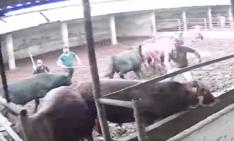 Amasya’nın Suluova ilçesinde çiftliğindeki büyükbaş hayvanları bir araya toplamak isteyen bir besici kabusu yaşadı. Boğanın boynuz darbesiyle yere savrulan besicinin yaşadığı dehşet anları, çiftliğin güvenlik kamerası tarafından saniye saniye kaydedildi.