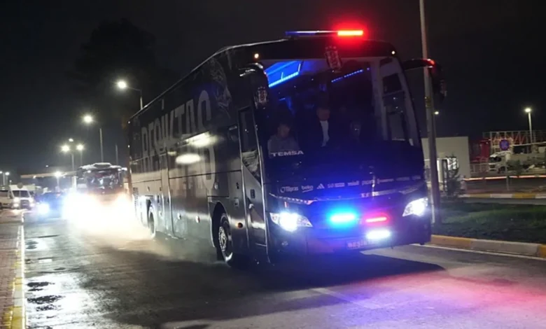 Süper Lig’in 12’nci haftasında yarın Antalyaspor ile deplasmanda karşılaşacak olan Beşiktaş, özel uçakla Antalya’ya geldi. Antalya Havalimanı’na iniş yapan siyah-beyazlı kafile, polis ekiplerinin oluşturduğu güvenlik koridoru eşliğinde havalimanından çıkarak takım otobüsüne bindi. Beşiktaş, yarın saat 20.00’de Antalyaspor ile oynayacağı karşılaşma öncesi kamp yapacağı otele geçti. (DHA)