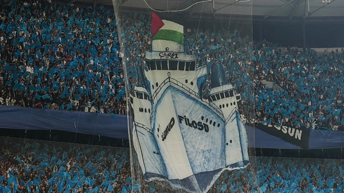 Trendyol Süper Lig’in 11. haftasında Beşiktaş, sahasında Fenerbahçe ile karşılaştı. Siyah-beyazlı taraftarlar, karşılaşma öncesinde kale arkası tribünde koreografi yaptı. Koreografide Sumud Filosu’na yer verilirken, alt tribünde de ‘Free Palestine’ pankartı açıldı.