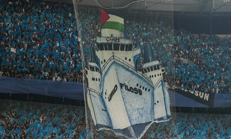 Trendyol Süper Lig’in 11. haftasında Beşiktaş, sahasında Fenerbahçe ile karşılaştı. Siyah-beyazlı taraftarlar, karşılaşma öncesinde kale arkası tribünde koreografi yaptı. Koreografide Sumud Filosu’na yer verilirken, alt tribünde de ‘Free Palestine’ pankartı açıldı.