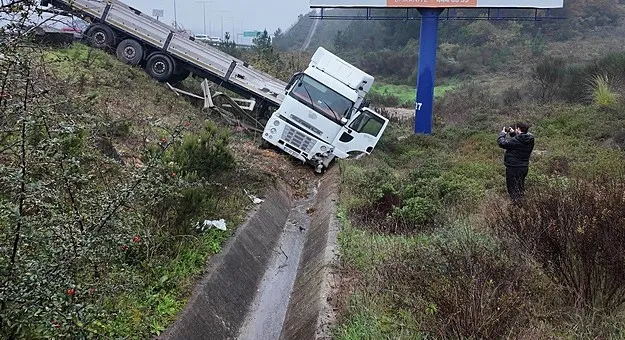 Beykoz’da sağanak yağış kaza getirdi: TIR şarampole devrildi! 1 yaralı