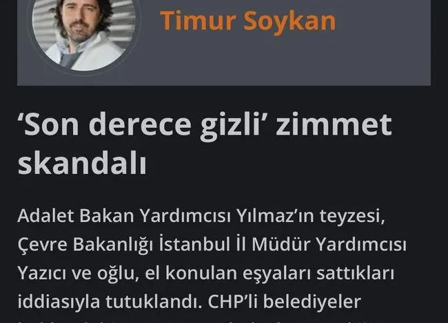 Birgün yazarı Timur Soykan’ın “Son derece gizli zimmet skandalı” başlığıyla gündeme taşıdığı haberin gerçeği yansıtmadığı ortaya çıktı. Haberde, zimmet suçlamasıyla tutuklu yargılanan Çevre, Şehircilik ve İklim Değişikliği İstanbul İl Müdür Yardımcısı Müzeyyen Yazıcı’nın, Adalet Bakan Yardımcısı Mehmet Yılmaz’ın teyzesi olduğu dile getirilerek “gizlenen dava” iddiası ortaya atıldı. Ancak yapılan incelemelerde, davada gizlilik kararı bulunmadığı, sanıkların tutuklu yargılandığı ve Yılmaz’ın sürece hiçbir şekilde müdahil olmadığı belirlendi.