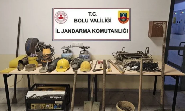 Bolu’nun Mengen ilçesinde kaçak kazı yapan 3 defineci, jandarma tarafından suçüstü yakalandı. Yakalanan 3 şahıs hakkında adli işlem başlatıldı. Bolu İl Jandarma Komutanlığı’na bağlı ekipler, Mengen’de bulunan ormanlık alanda kaçak kazı yapıldığı ihbarı üzerine harekete geçti. Ekipler, ormanda kaçak kazı yapan 3 defineciyi suçüstü yakaladı. Operasyonda, 1 jeneratör, 2 kırıcı-delici makine, hava pompası, dalgıç pompa, manyetik ateşleyici kutusu ile çeşitli kazı malzemeleri ele geçirildi.
