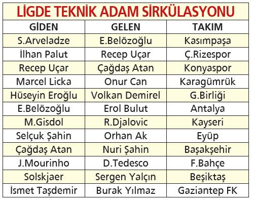 Sergen Yalçın, yuvaya geri döndü. Başakşehir’de ise Çağdaş Atan koltuğunu Nuri Şahin’e devredip, Recep Uçar’dan boşalan Konyaspor’un başına geçti. Eyüpspor’da Selçuk Şahin- Orhan Ak, Kayserispor’da ise Gisdol-Djalovic devir teslimleri oldu. Antalyaspor ile göreve başlayan Emre Belözoğlu, Akdeniz ekibinden ayrılınca Kasımpaşa’ya imza attı. Licka ile yollarını ayıran Karagümrük, koltuğu Onur Can’a emanet ederken İlhan Palut’un da Çaykur Rize serüveni sona erdi.