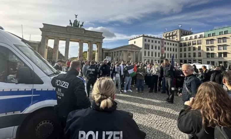 Brandenburg Kapısı’nda Filistin’e destek eylemi