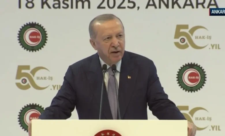Başkan Recep Tayyip Erdoğan, ATO Congresium’da düzenlenen HAK-İŞ Konfederasyonu 50. Kuruluş Yıl Dönümü Programı’nda önemli açıklamalarda bulunuyor.