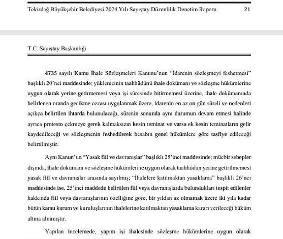 Sayıştay’ın CHP yönetimindeki Tekirdağ Büyükşehir Belediyesi için hazırladığı 2024 yılı düzenlilik denetimi raporu (İHA)