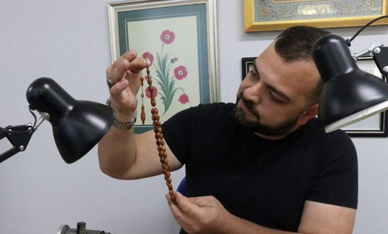 Tespih alıp satmayla başladığını, daha sonra yapımına merak saldığını anlatan Türkoğlu, “Bu sanatı sevdiğimi, ayrı ilgim olduğunu anladım ve ardından Allah nasip etti ustalığına başladım.10 yıl öncesinde tespih deseydiniz aksesuar, koleksiyon ürünü olarak görüyordum ama şu anda farklı açıdan bakmaya başladım. Kültürel miras olarak bunun değerini anlıyorum. Geçmişimizden gelen kültürü şu an sırtlandık, nasipse geleceğe aktaracağız” diye konuştu.
