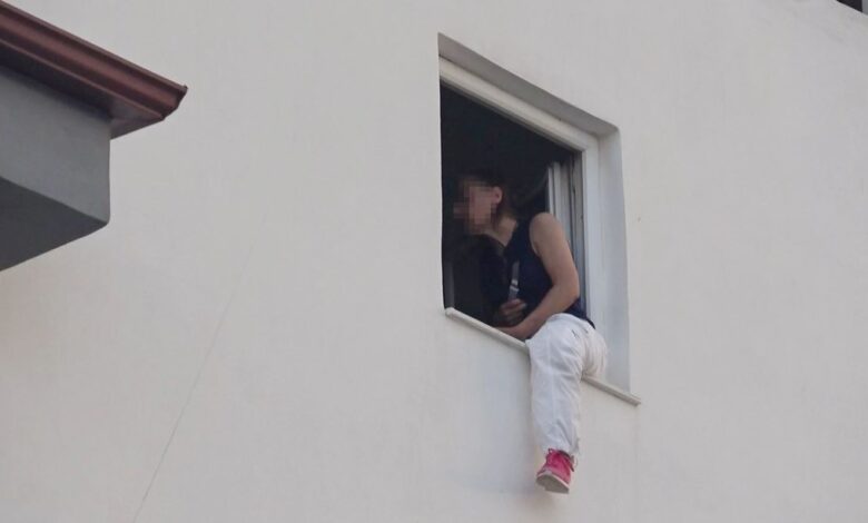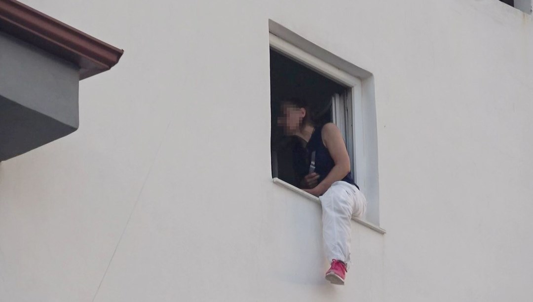 Çocuğunun çığlıklarını duyan Alihan Ç., Nazmiye Ş.’nin elindeki çakmağa vurup, düşürdü. Elindeki bıçağı da almaya çalışan Alihan Ç.’nin yanından kaçan Nazmiye Ş., apartmanın çatı katına çıkarak camdan sarktı. İhbarla bölgeye itfaiye, polis ve sağlık ekipleri sevk edildi. Ekiplerin yaklaşık 4 saat süren çabasına rağmen ikna edilemeyen Nazmiye Ş.’nin bir anlık dalgınlığından yararlanan polis, kadını bulunduğu yerden aldı.