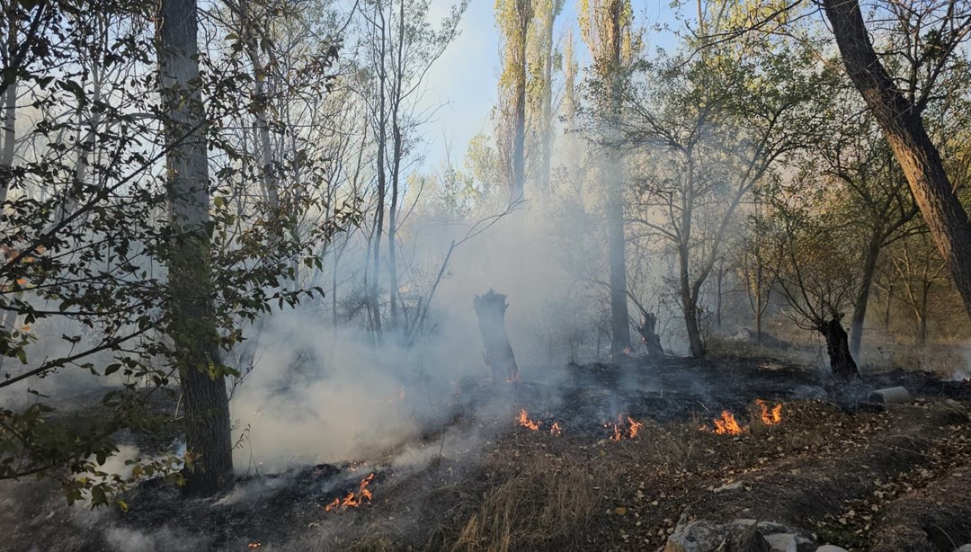 Rüzgarın etkisiyle kısa sürede büyüyen alevler çevredeki ağaçlık alana sıçradı.