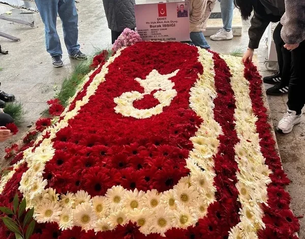 Çorumlu şehidimizin mezarına çiçeklerden Türk Bayrağı…