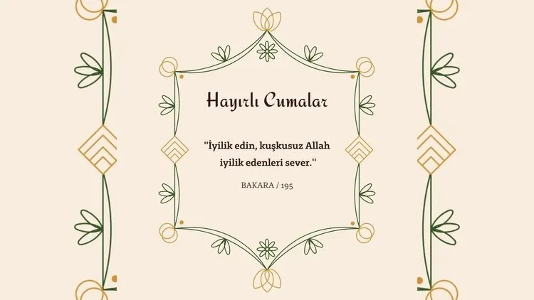 “Cumanın bereketi üzerinizde olsun. Huzur, sağlık ve mutluluk dilerim. Hayırlı Cumalar!”