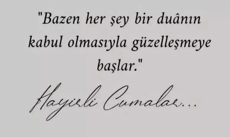 Rabbimizin rahmetiyle kuşanmış bu mübarek günde, gönlünüzün huzurla dolması dileğiyle. Cumanın, tüm dileklerinizi gerçekleştireceği, kalbinizdeki sıkıntıları alıp, yerine huzur bırakacağı bir gün olmasını temenni ederim. Cumanız mübarek, dualarınız kabul olsun.
