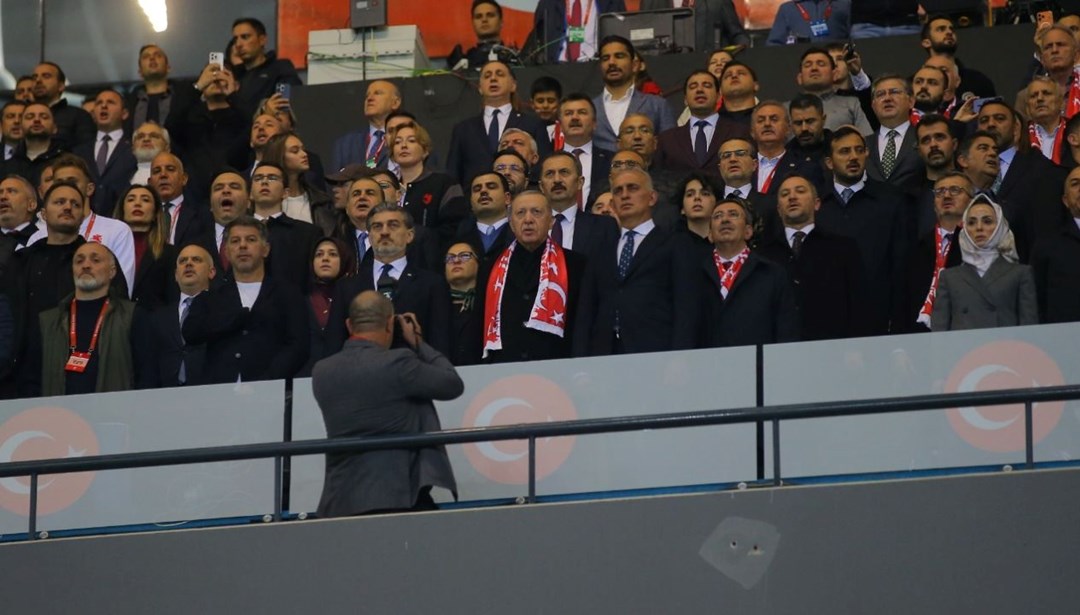 Cumhurbaşkanı Erdoğan, karşılaşmayı Gürcistan Cumhurbaşkanı Mikheil Kavelaşvili ile birlikte protokol tribününden takip etti.