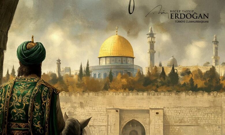 “Kudüs’ün Fethi’nin 838’inci yıl dönümünde, bu mukaddes şehrin ikinci fatihi Selahaddin Eyyubi’yi ve kahraman askerlerini rahmetle yad ediyorum.