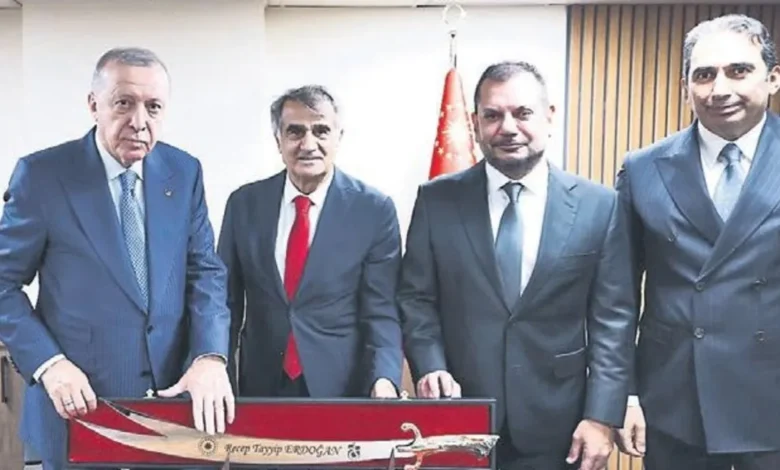 Trabzonspor Başkanı Ertuğrul Doğan, Asbaşkanı Zeyyat Kafkas ve bordo mavililerin efsane ismi Şenol Güneş, ‘Yapımı Tamamlanan Tesis ve Projelerin Toplu Açılış Töreni’ için önceki gün Trabzon’a giden Cumhurbaşkanı Recep Tayyip Erdoğan ile bir araya geldi. Görüşmede, Türk futbolunun durumu üzerine fikir alışverişinde bulunuldu. Cumhurbaşkanı Erdoğan’a, üzerinde isminin yer aldığı işlemeli bir ‘Sürmene Kılıcı’ takdim edildi.