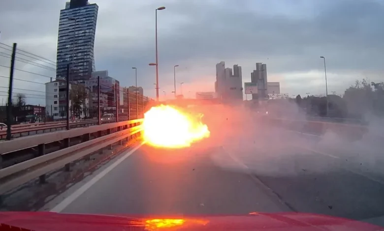 Şişli Mecidiyeköy D-100 Karayolu’nda makas atan bir sürücü, direksiyon hakimiyetini kaybederek bariyerlere çarptı. Çarpmanın ardından otomobil alev alırken, patlamayla kopan motor yola fırladı. Dehşet anları araç kamerasına saniye saniye yansıdı.