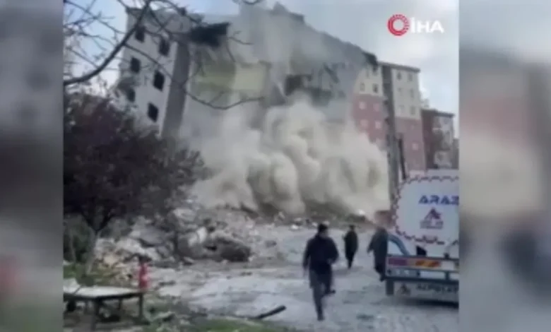 Yıkım esnasında bina aniden çökünce çevrede büyük panik yaşandı. Yıkım çalışmalarını izleyen çocuklar ve vatandaşlar koşarak enkaz altında kalmaktan kurtuldu. O anlar kameraya yansıdı.