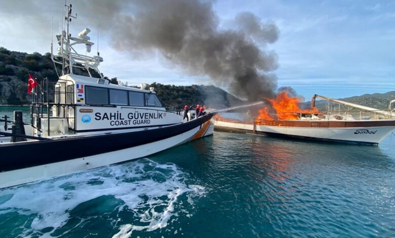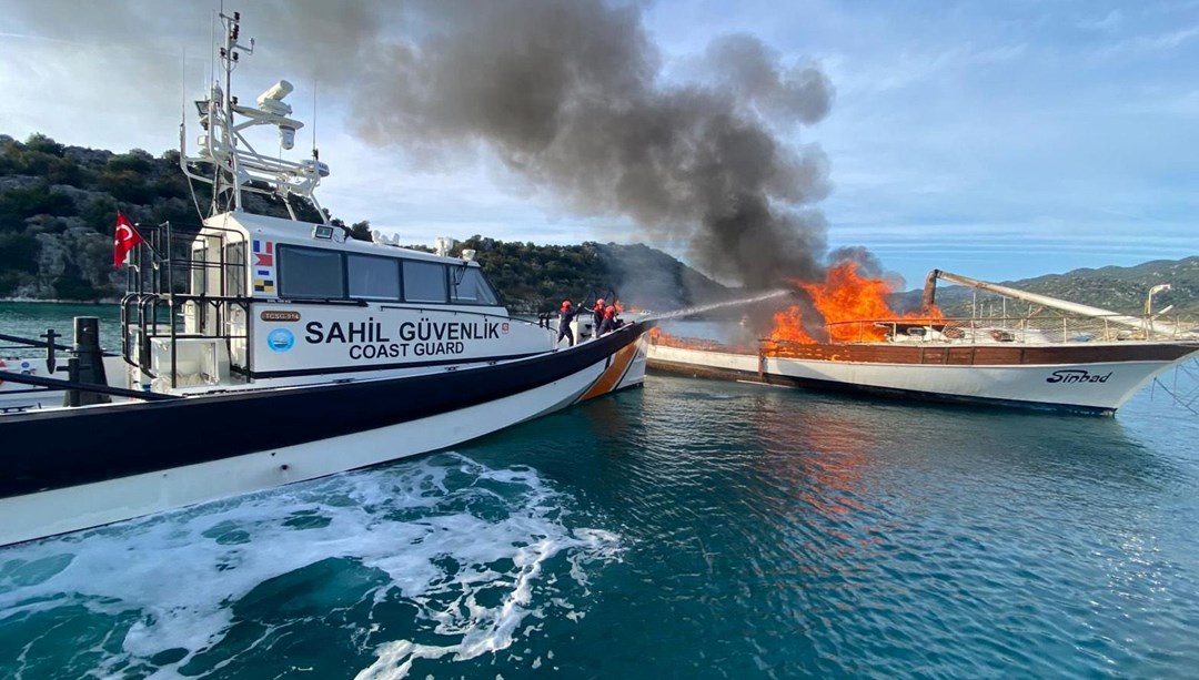 Üçağız Limanı’nda bağlı bulunan ‘Sinbad’ isimli ticari yatta yangın çıktı. Yatın alev aldığını gören çevredekiler kendi imkanlarıyla alevlere müdahale etti.
