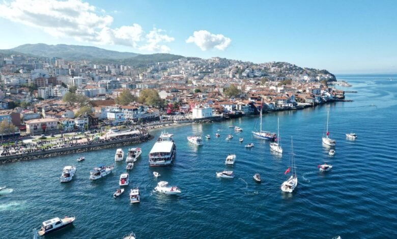 Cumhuriyet Bayramı kutlamaları çerçevesinde düzenlenen deniz kortejine, yelkenlilerden balıkçı teknelerine kadar çok sayıda deniz aracı katıldı.
